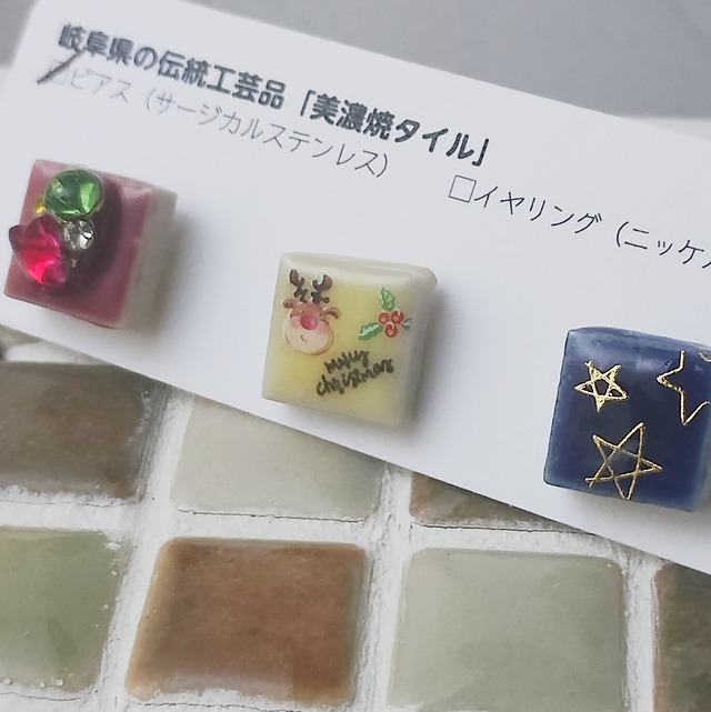 コピ心ときめく小さなアート「美濃焼タイルピアス/サージカルステンレス