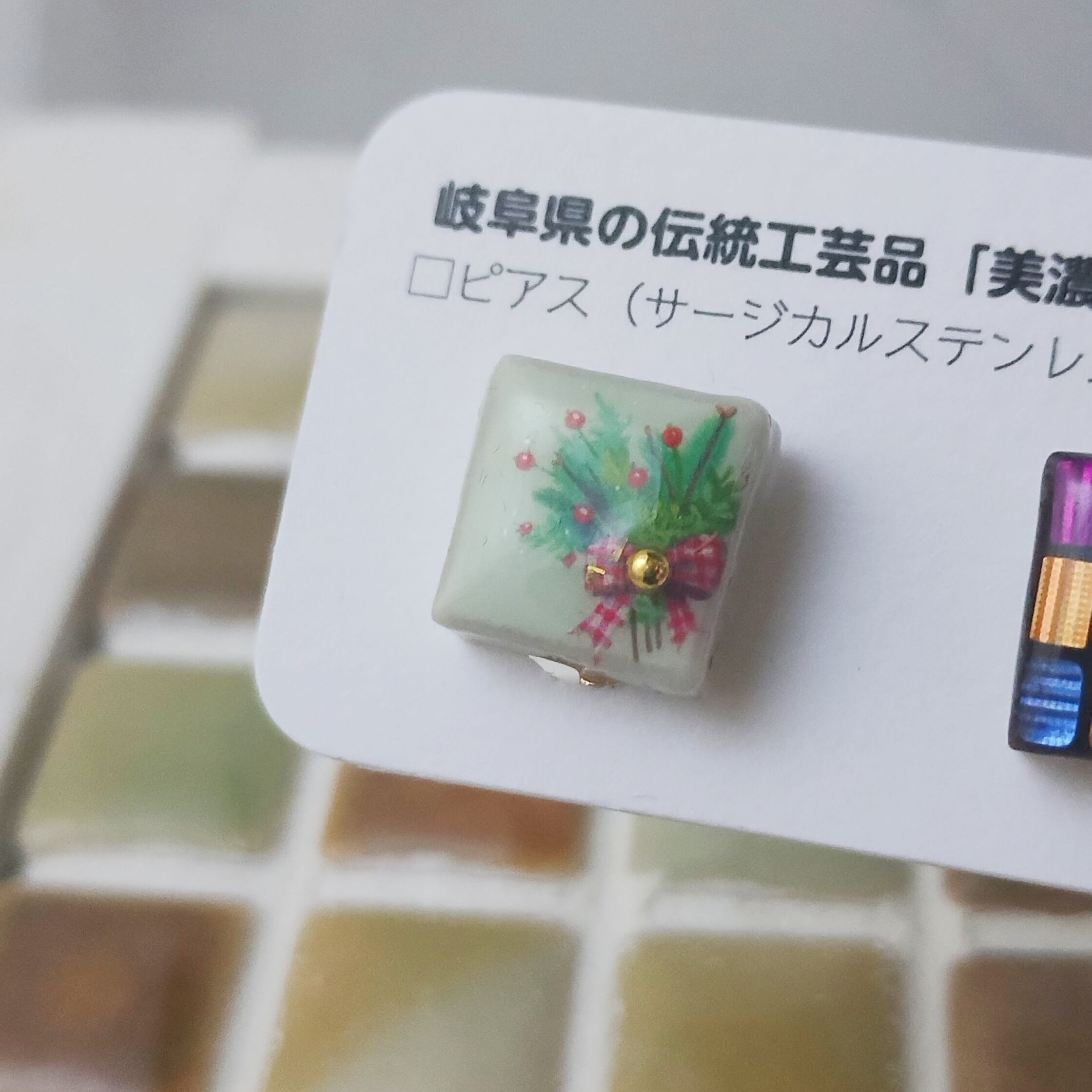 心ときめく小さなアート「美濃焼タイルイヤリング/ニッケルフリー」