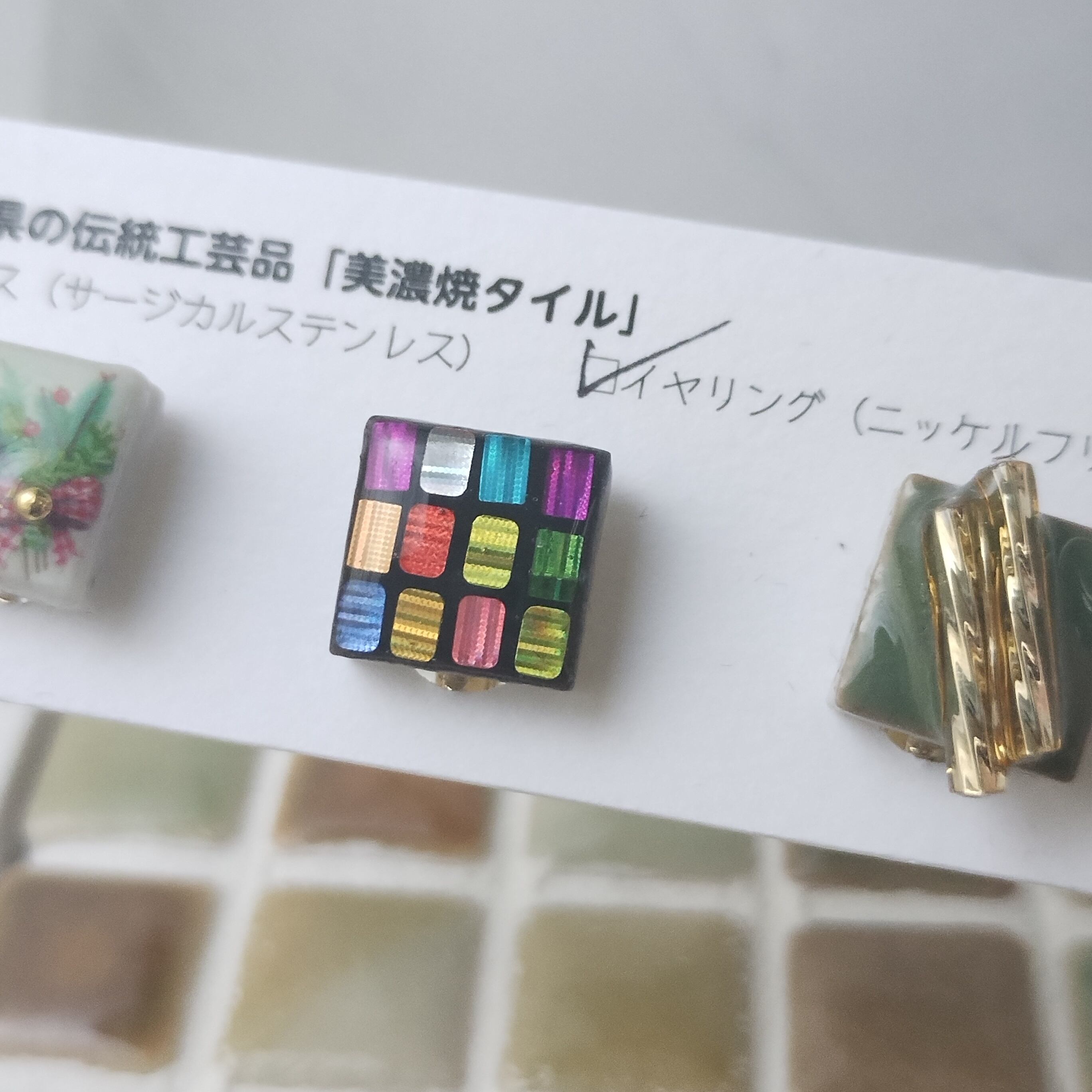 日常に彩りを添える美濃焼タイルの耳飾り。。。