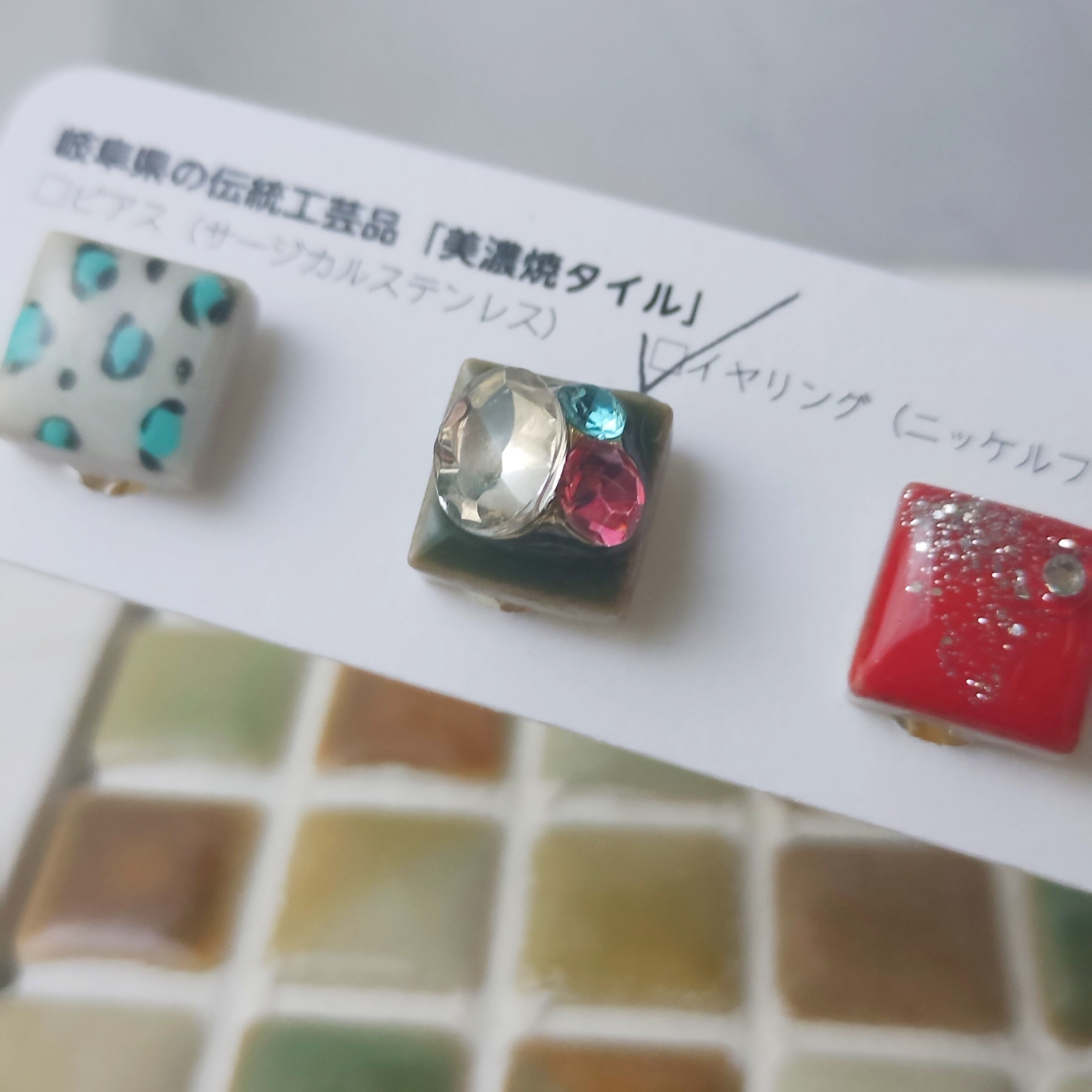 日常に彩りを添える美濃焼タイルの耳飾り。。。