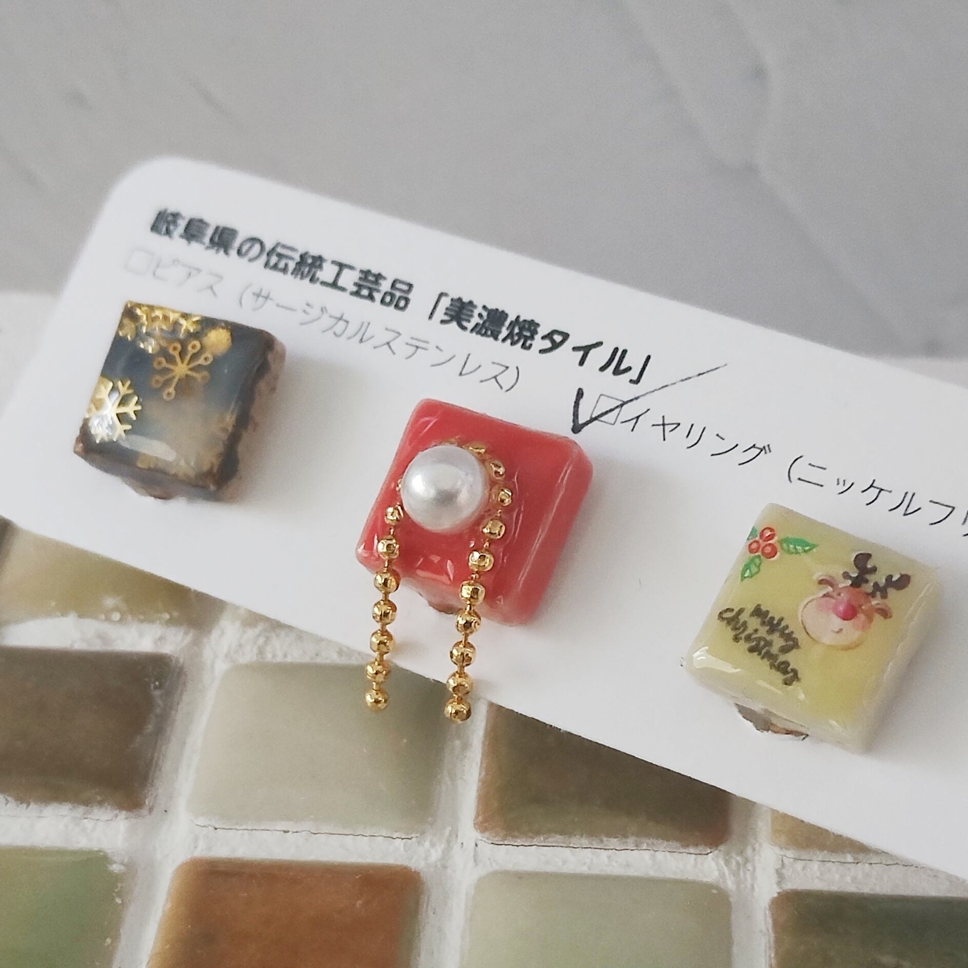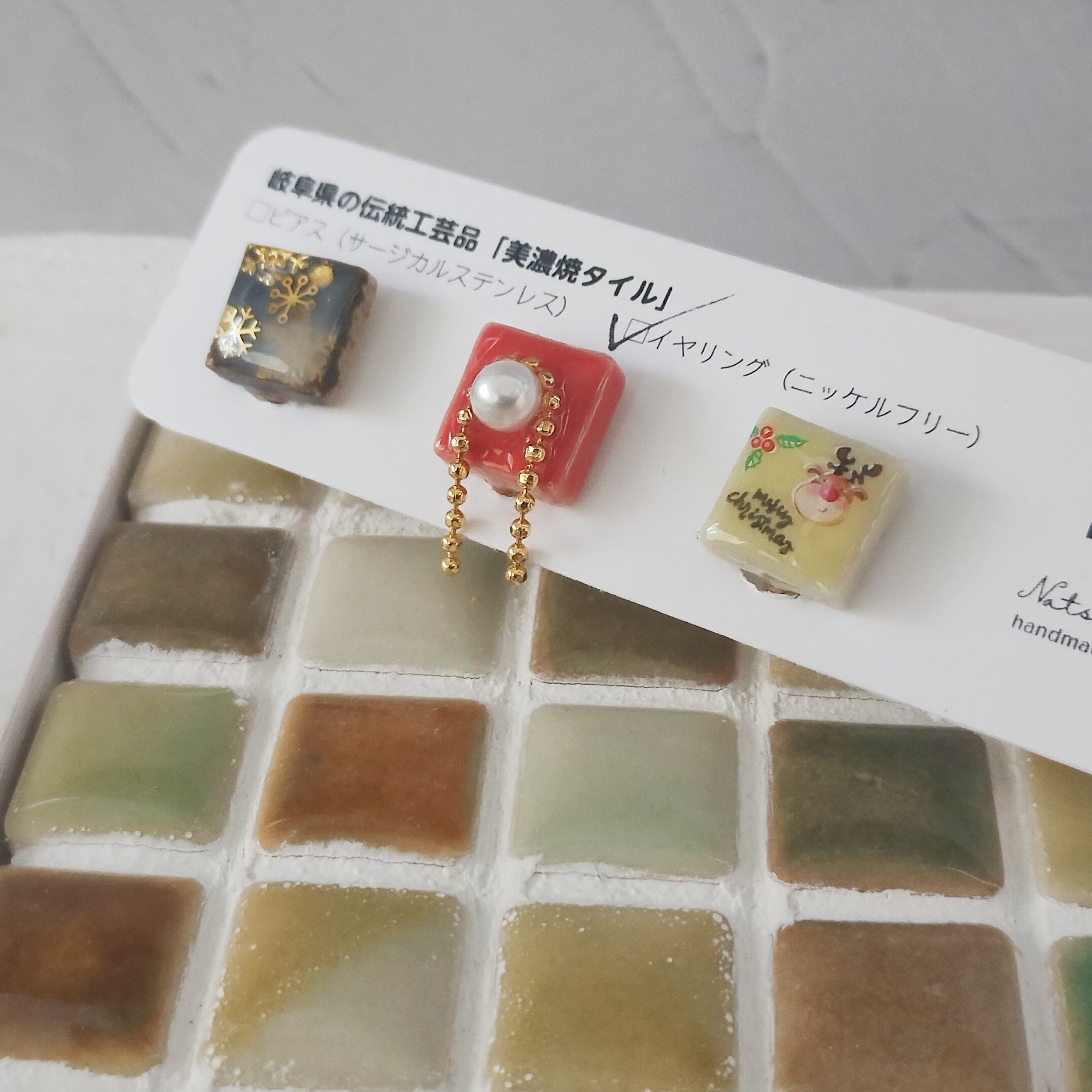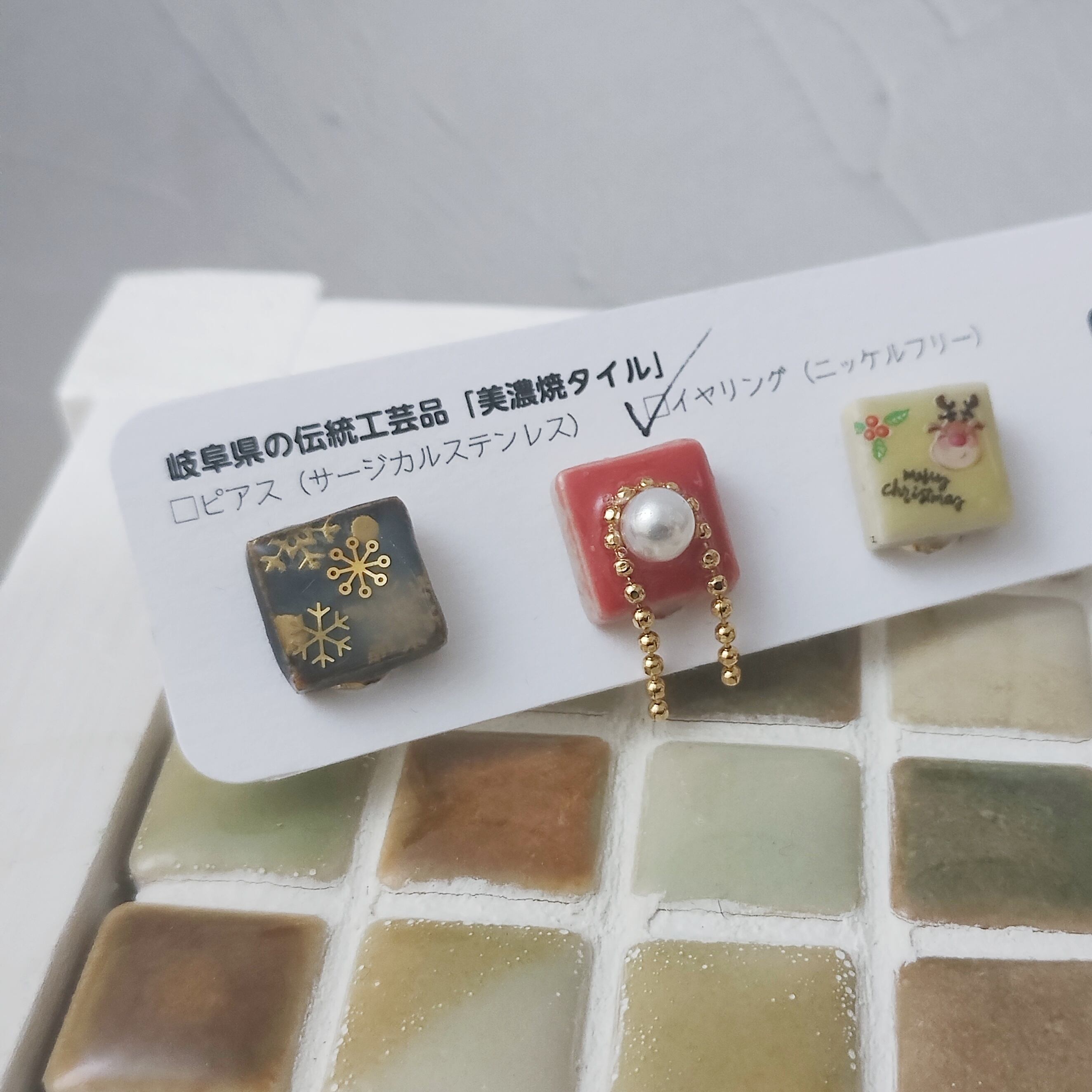 心ときめく小さなアート「美濃焼タイルイヤリング/ニッケルフリー」
