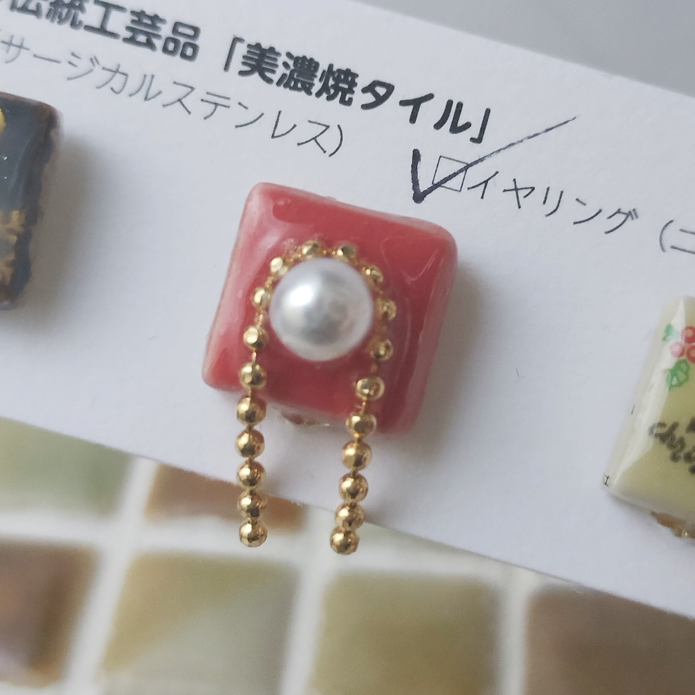 日常に彩りを添える美濃焼タイルの耳飾り。。。