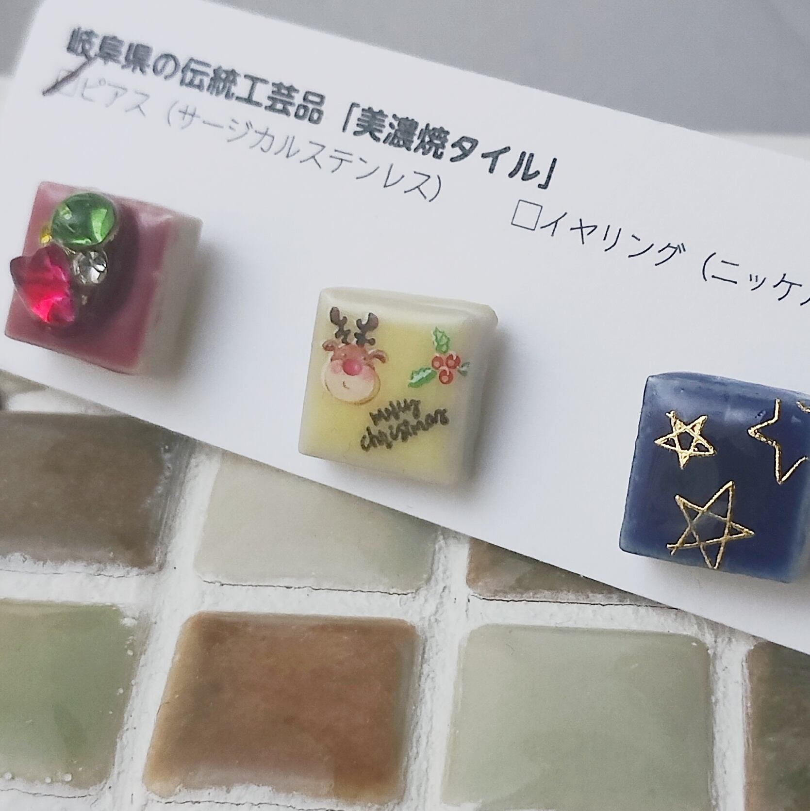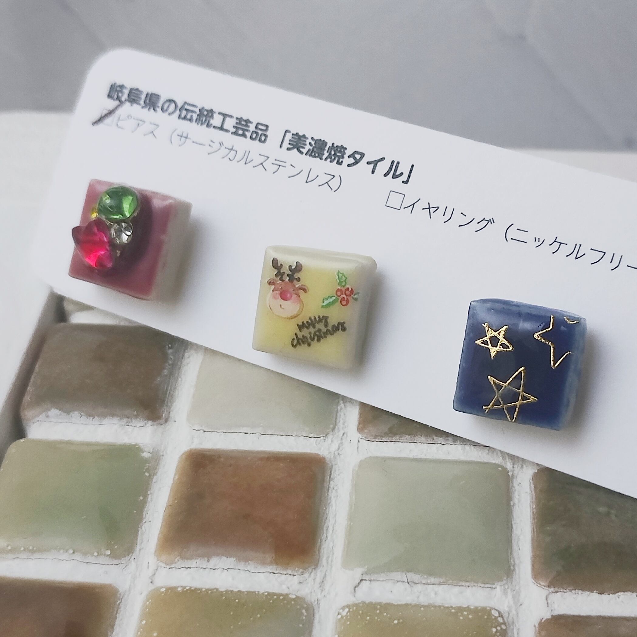 心ときめく小さなアート「美濃焼タイルピアス/サージカルステンレス