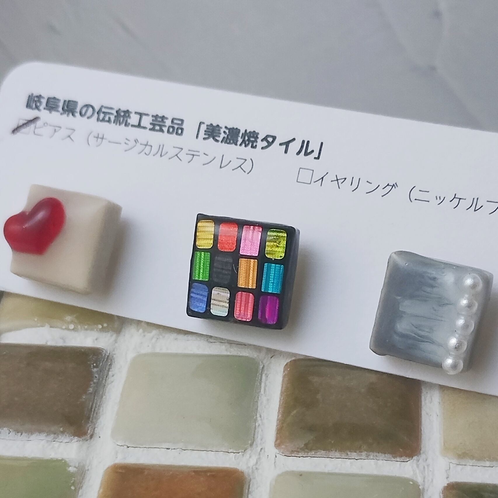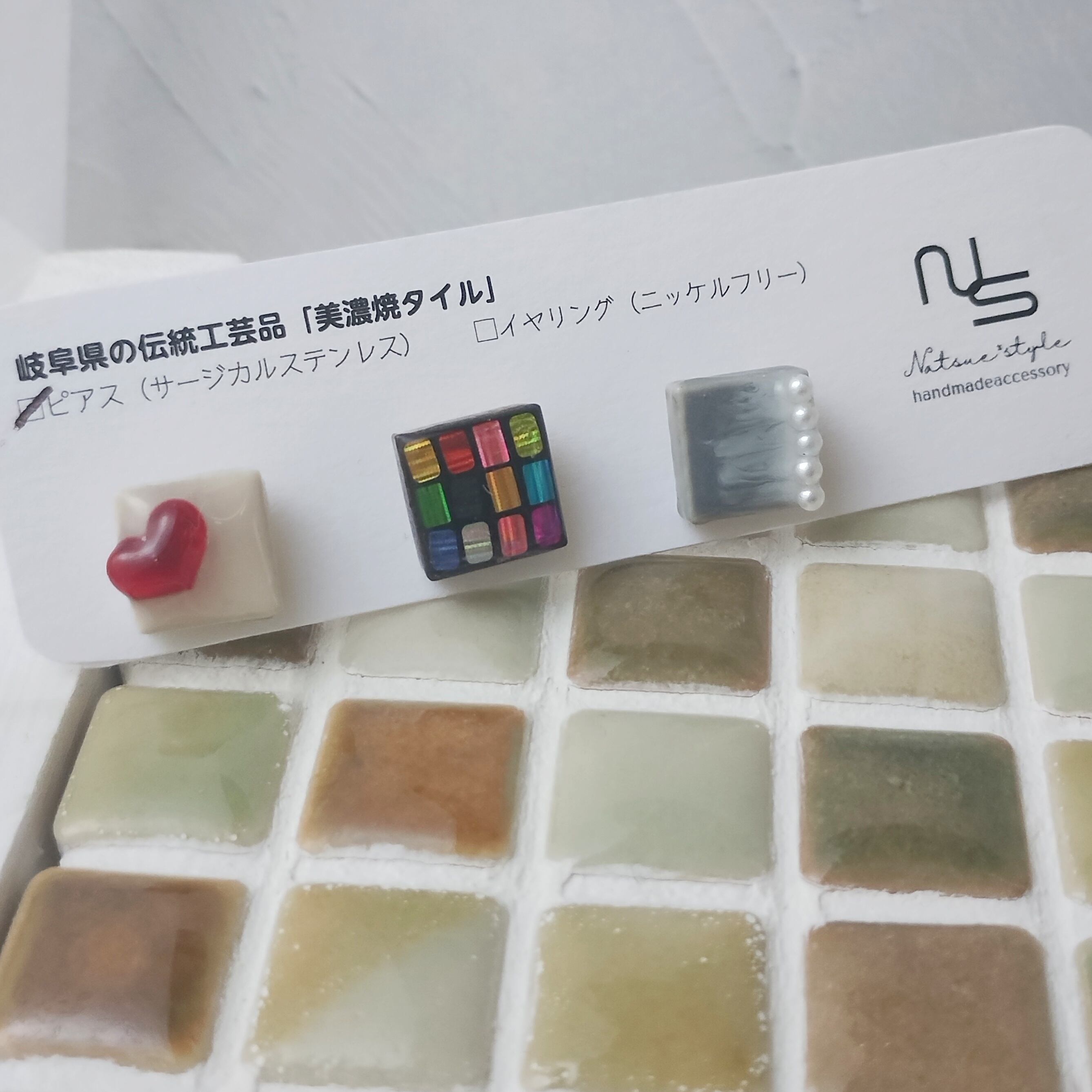 コピ心ときめく小さなアート「美濃焼タイルピアス/サージカルステンレス
